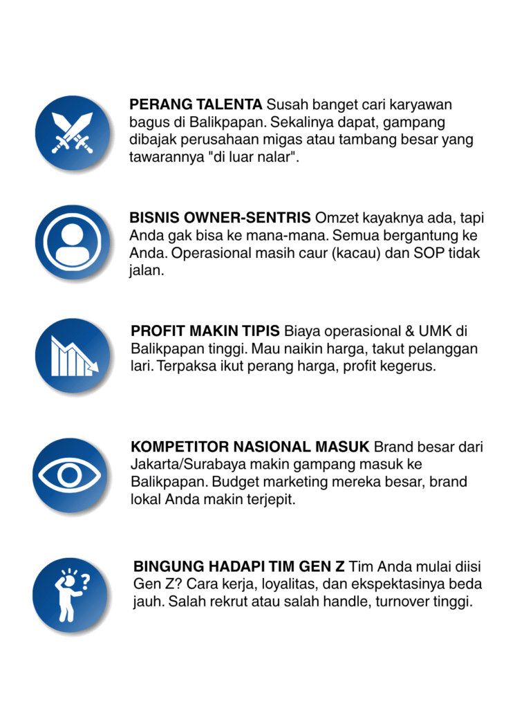 Itu belum termasuk kerugian akibat operasional berantakan atau budget marketing yang boncos. Investasi workshop ini adalah biaya untuk ‘membereskan’ itu semua.